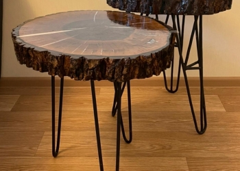 Прикроватный столик из слеба капового карагача и эпоксидной смолы в два слоя.