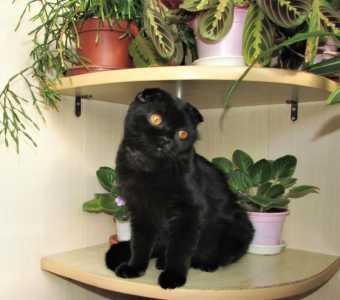 по символической цене отдается черная шотландская кошечка,возраст 3.